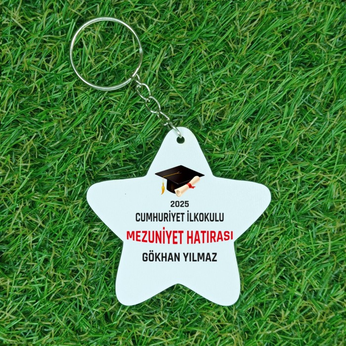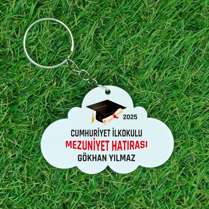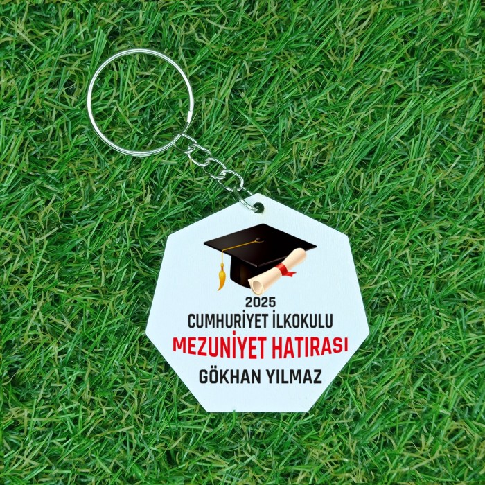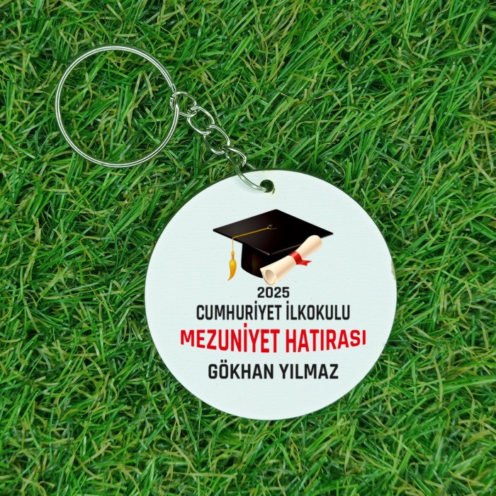 İsme Özel Ahşap Kepli Yuvarlak Mezuniyet Anahtarlık