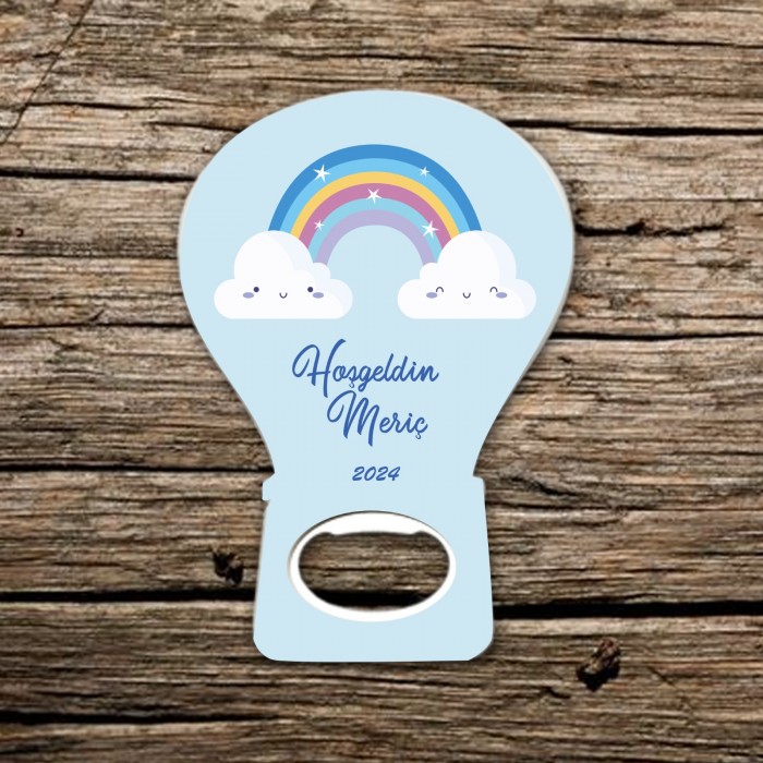İsme Özel Hoş Geldin Erkek Bebek Gökkuşağı Temalı Balon Açacak Magnet