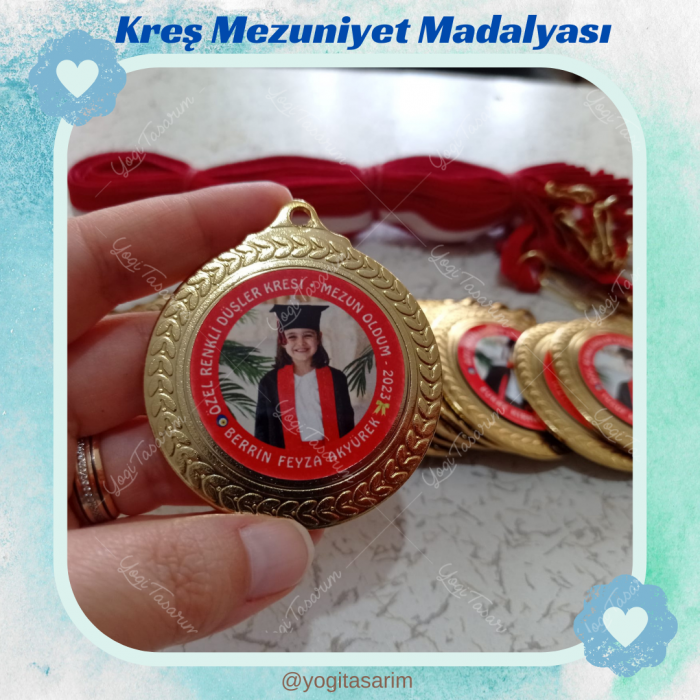 • Kreş İsimli Resimli Mezuniyet Madalyası