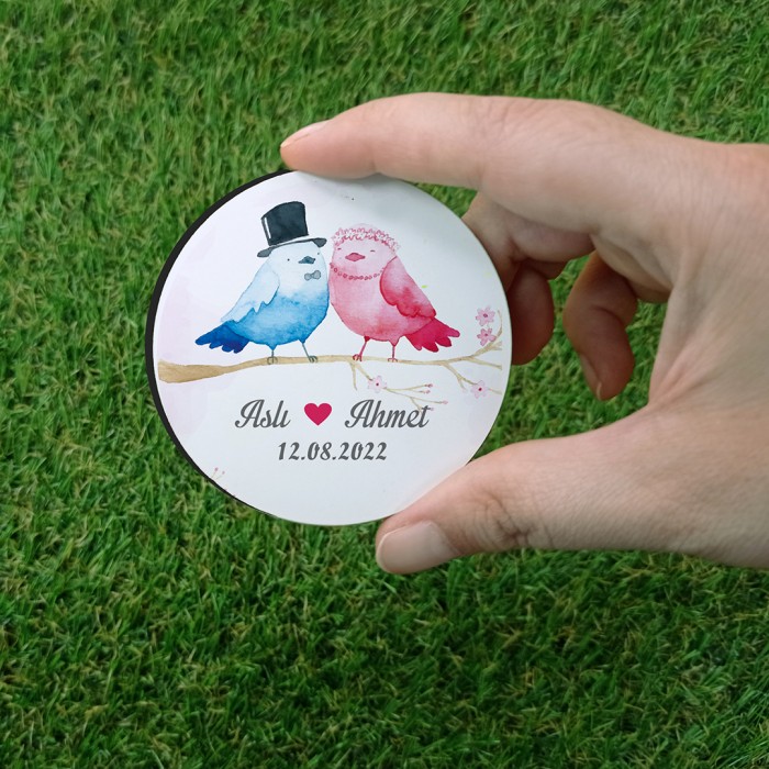 • Mavi Pembe Kuş Temalı Ahşap Magnet