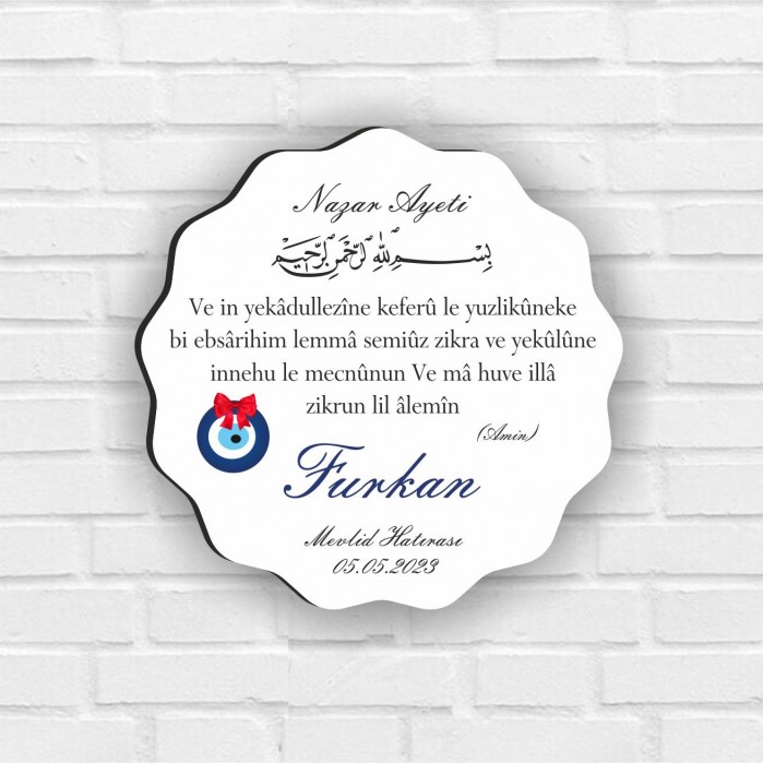 Nazar Ayetli Mevlid Hatırası Ahşap Magnet