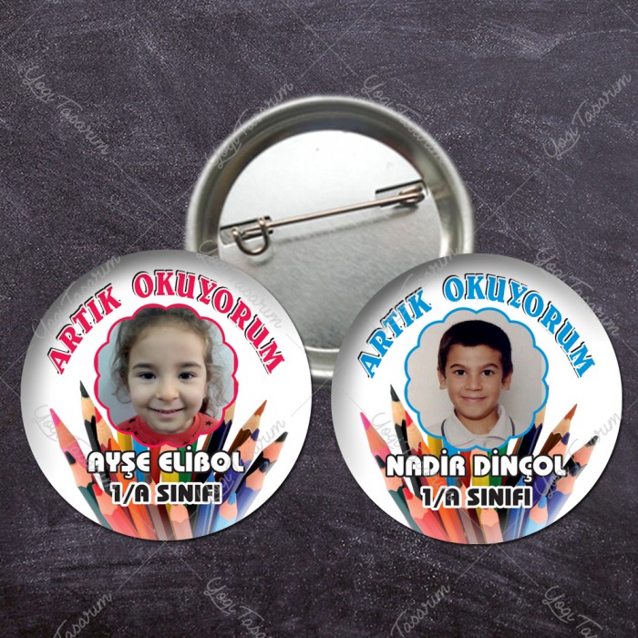 • Renkli Kalem Temalı Artık Okuyorum İğneli Rozet