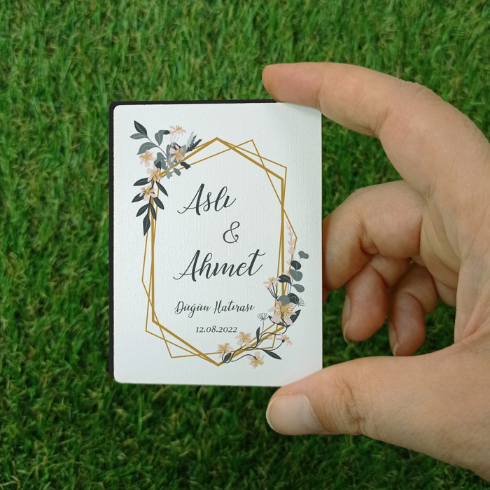 Sarı Çiçekli Düğün Hatırası Ahşap Magnet