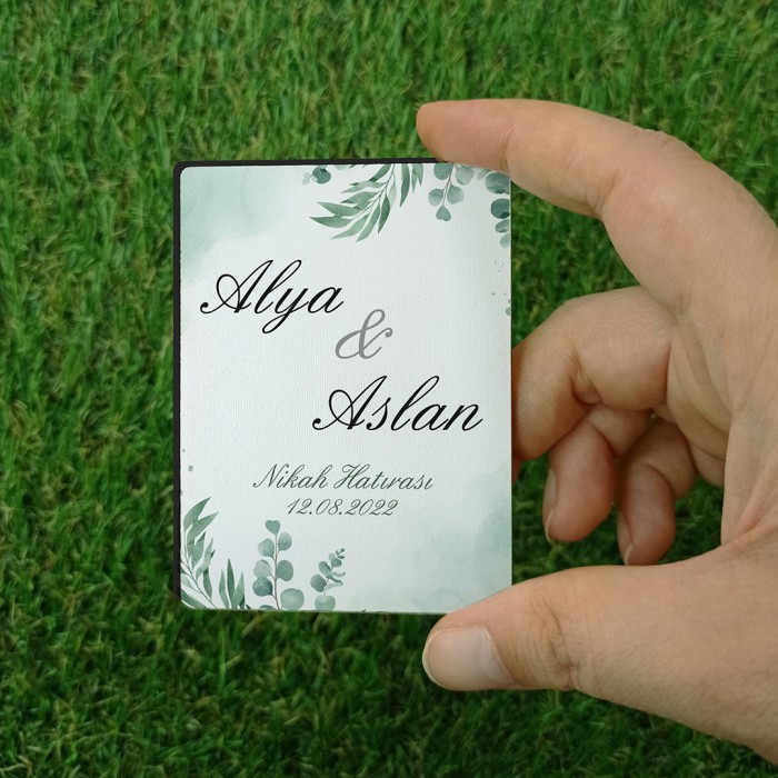• Yaprak Temalı Nikah Hatırası Ahşap Magnet